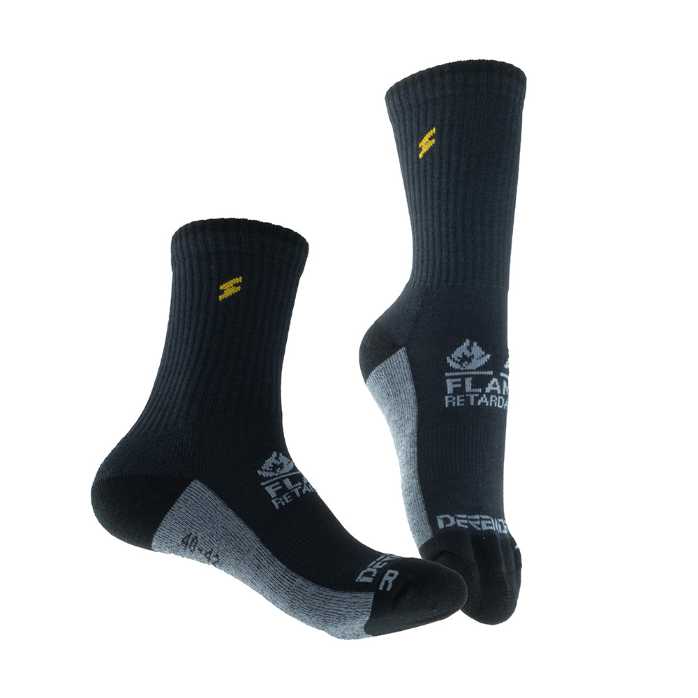 El Calcetín Antiflame Hombre está fabricado con fibras ignífugas inherentemente resistentes al fuego y con protección antiestática. Diseñado como primera capa técnica, es antimicrobiano, transpirable y mantiene el pie seco.