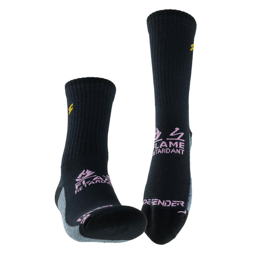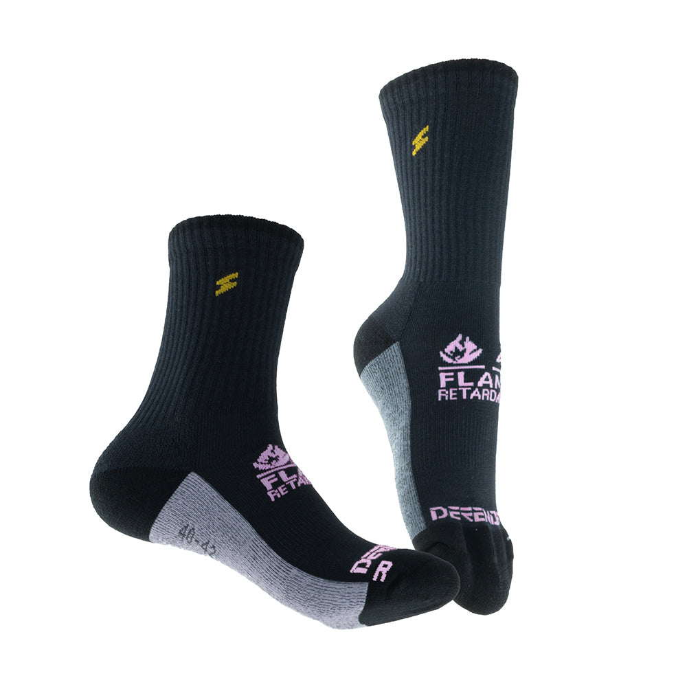 El Calcetín Antiflame Mujer es un calcetín técnico con fibras ignífugas que ofrecen resistencia permanente al fuego y protección electrostática. Diseñado como primera capa técnica, evacúa la humedad y mantiene el pie seco.