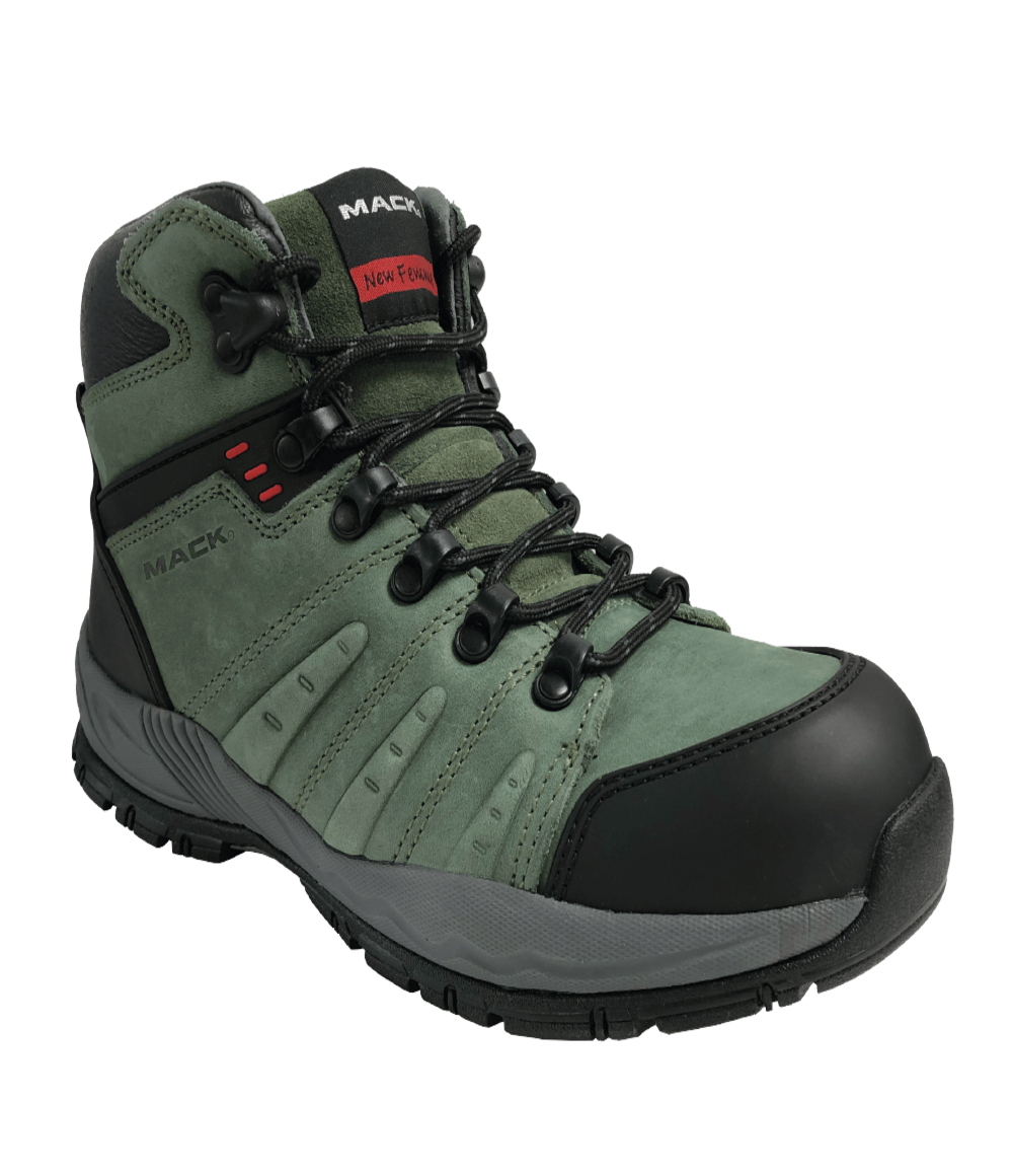 Cuero Nobuck color verde, Entresuela de eva que brinda mayor comodidad. Planta de goma resistente a los hidrocarburos y sus derivados. Refuerzos de TPU en la puntera y talón. Puntera de seguridad composite. Plantilla interior de gel.