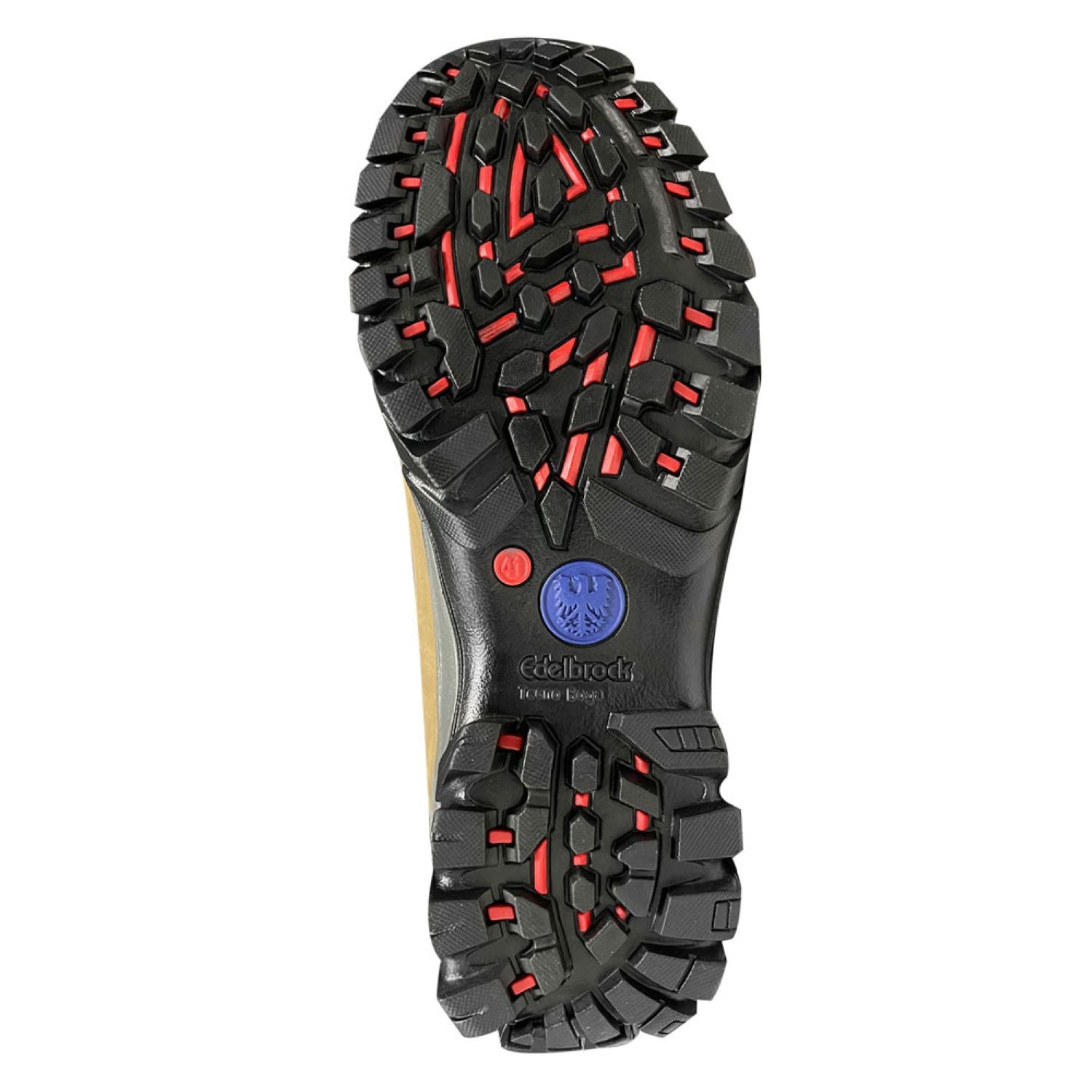 Calzado Edelbrock Black Label, con puntera de seguridad Ligth composite Toe (mas liviana que el acero) y plantilla antiperforante Wellmax®, plantilla de armado con propiedades anticlavo pero de material no metálico, sin perder la flexibilidad de un botin clásico. Aislante térmico thinsulate para mantener la temperatura de los pies. Capellada de cuero Nobuck cafe y sobrepuntera de caucho negro manteniendo la elegancia de un Edelbrock.