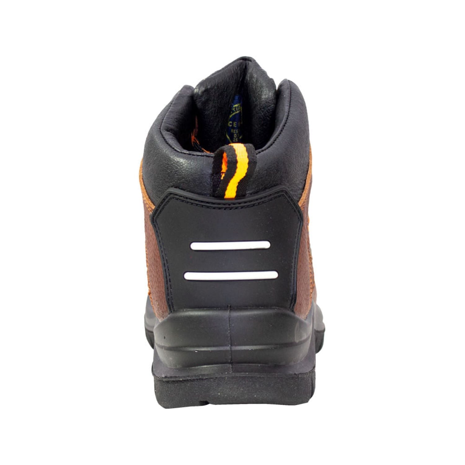 Zapato fabricado con cuero PULL UP, hidrofugado de color café, con pasacordones plásticas y textibles. El cuello del zapato tambien es de cuero acolchado para un mejor calce. La puntera de light composite toe de alta resistencia lo hace un calzado mucho más liviano. Plantilla de armado antiperforante no metálica de kevlar. Cuenta con un refuerzo de PR en talón, además de topes reflectivos para una mayor seguridad en lugares oscuros. 100% Dielectrico.